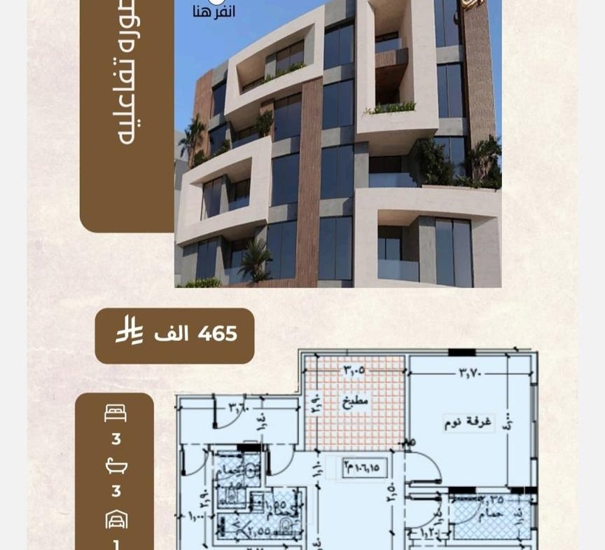 سعر هذه الشقه 465,000 ريال، وهو سعر تنافسي للمنطقة والميزات المتاحة.